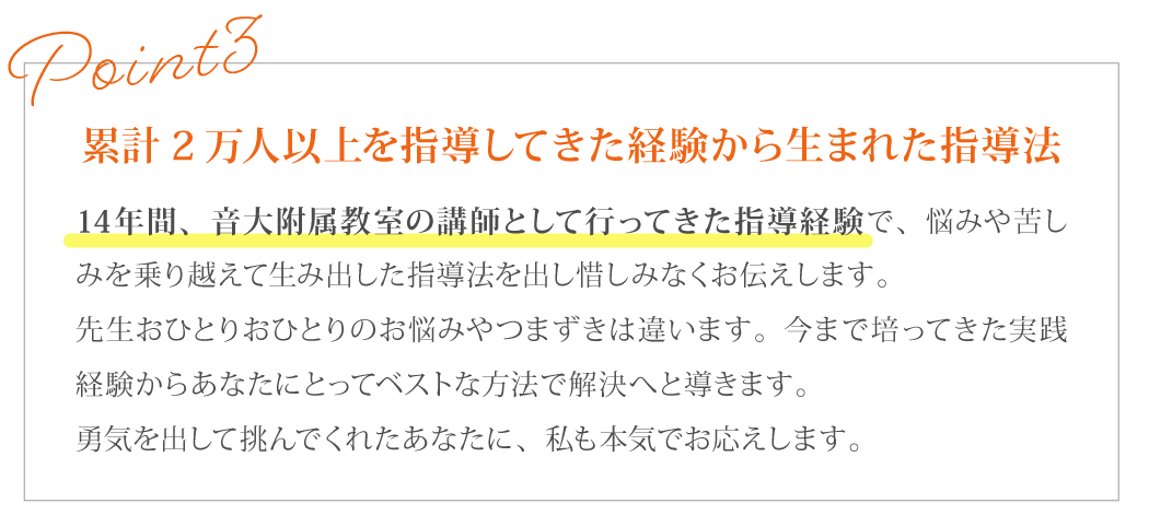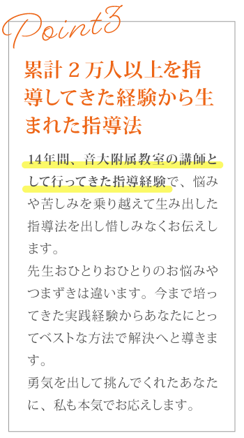 レッスンの悩みが解決でき、自分自身レッスンがとても楽しくなりました。