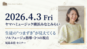 2026年4月3日(金)、ヤマハミュージック 横浜みなとみらい にて、「生徒も先生も夢中になれる!ソルフェージュレッスン講座」 を担当させていただくことになりました。